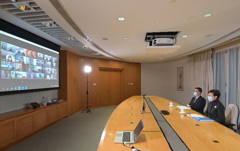 The Chief Executive, Mrs Carrie Lam, met members of the University Grants Committee (UGC) today (January 14) in a video conference to exchange views on the latest developments of the higher education sector.